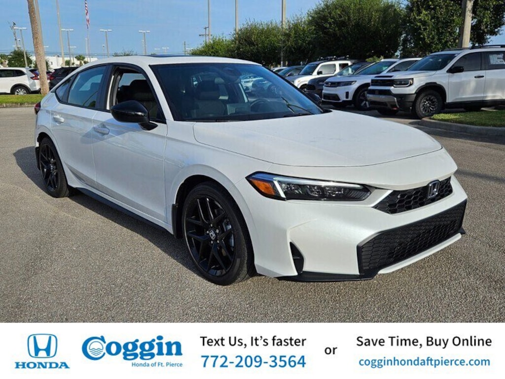 Platinum White Pearl 2025 Honda Civic Hybrid Sport FWD eCVT 2.0L I4 DOHC 16V