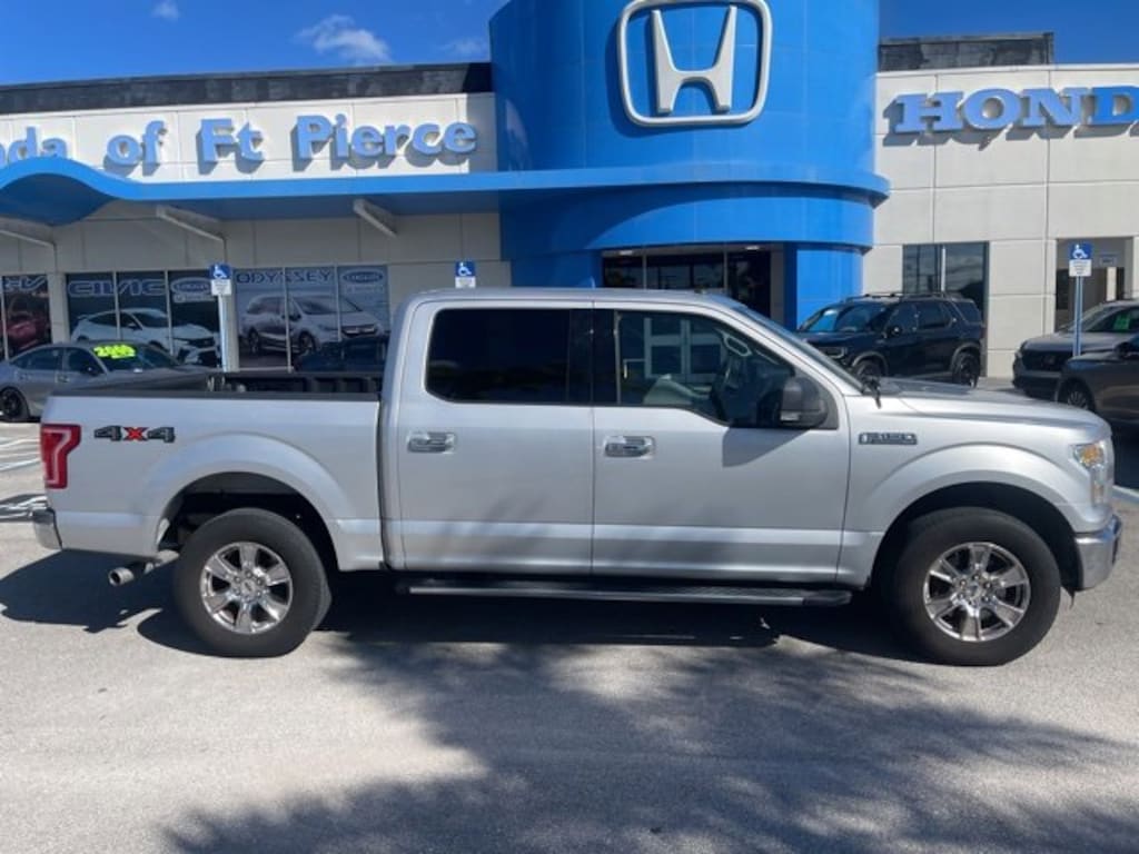 2016 Ford F-150 XLT SuperCrew 4WD Stock #: CHF251449A | VIN: 1FTEW1EF2GFA18871 | Odometer: 116,194, Tough, capable, and loaded with optionsthis 2016 Ford F-150 XLT SuperCrew 4WD is built to handle work, play, and everything in between. Finished in Ingot Silver Metallic with a Medium Earth Gray interior, this full-size pickup combines modern comfort with legendary Ford performance., Key Features & Highlights:, **Engine & Performance: Powerful 5.0L V8 FFV engine delivering strong towing and hauling capability**, **Transmission & Drivetrain: 6-speed automatic electronic transmission with 4WD for confident traction on all terrains**, **Equipment Group 302A: Includes upgraded features like power-adjustable pedals, remote start, heated front seats, and a 10-way power driver seat**, **Technology: Voice-Activated Navigation System, SYNC 3 infotainment with touchscreen, Bluetooth connectivity, and USB ports**, **Towing Capability: Trailer Tow Package with integrated trailer brake controller, hitch receiver, and enhanced cooling system for serious towing power**, **Interior Comfort: Spacious SuperCrew cab with seating for five, premium cloth interior, dual-zone automatic climate control**, **Exterior Features: Chrome bumpers and grille, fog lamps, and bed liner for added durability**, **Safety: Rearview camera, AdvanceTrac with Roll Stability Control, and multiple airbags**, Whether youre hauling equipment, towing a boat, or cruising along the Treasure Coast, this F-150 XLT delivers the reliability, performance, and comfort that make it Americas favorite truck., Stop by Coggin Honda Ft. Pierce today to test drive this 2016 F-150 XLT and see why its the perfect fit for South Floridas active lifestyle!. Recent Arrival! Odometer is 25028 miles below market average!