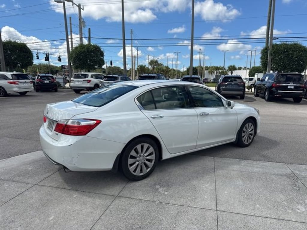 HondaTrue Used! 100 Day 5,000 Mile Factory Warranty! 2015 Honda Accord EX-L HondaTrue Used Powerful V6 Performance & Premium Comfort, White Orchid Pearl | Ivory Leather Interior | 132,899 Miles, Experience timeless design and proven Honda reliability with this 2015 Honda Accord EX-L, powered by the smooth and responsive 3.5L V6 i-VTEC engine. Finished in elegant White Orchid Pearl over an Ivory leather interior, this HondaTrue Used Certified sedan combines luxury, performance, and long-term value perfect for drivers across South Florida., Key Features:, **Performance: 3.5L V6 engine with 6-speed automatic transmission, delivering strong acceleration and refined highway cruising.**, **HondaTrue Used Benefits: Comprehensive inspection, extended warranty coverage, and roadside assistance for added peace of mind.**, **Luxury Interior: Heated leather front seats, power moonroof, dual-zone automatic climate control, and premium materials throughout.**, **Technology: Touchscreen infotainment system with Bluetooth, HondaLink, rearview camera, and premium audio for a connected drive.**, **Safety: Equipped with advanced airbags, stability assist, lane watch camera, and anti-lock braking for confidence on every trip.**, Well-maintained and HondaTrue Certified, this Accord EX-L delivers the perfect balance of sophistication, performance, and reliability a smart choice for daily commutes or weekend drives., Available now at Coggin Honda Ft. Pierce your local source for trusted Honda Certified vehicles.. Clean CARFAX. Certified. Recent Arrival! HONDA TRUE USED
