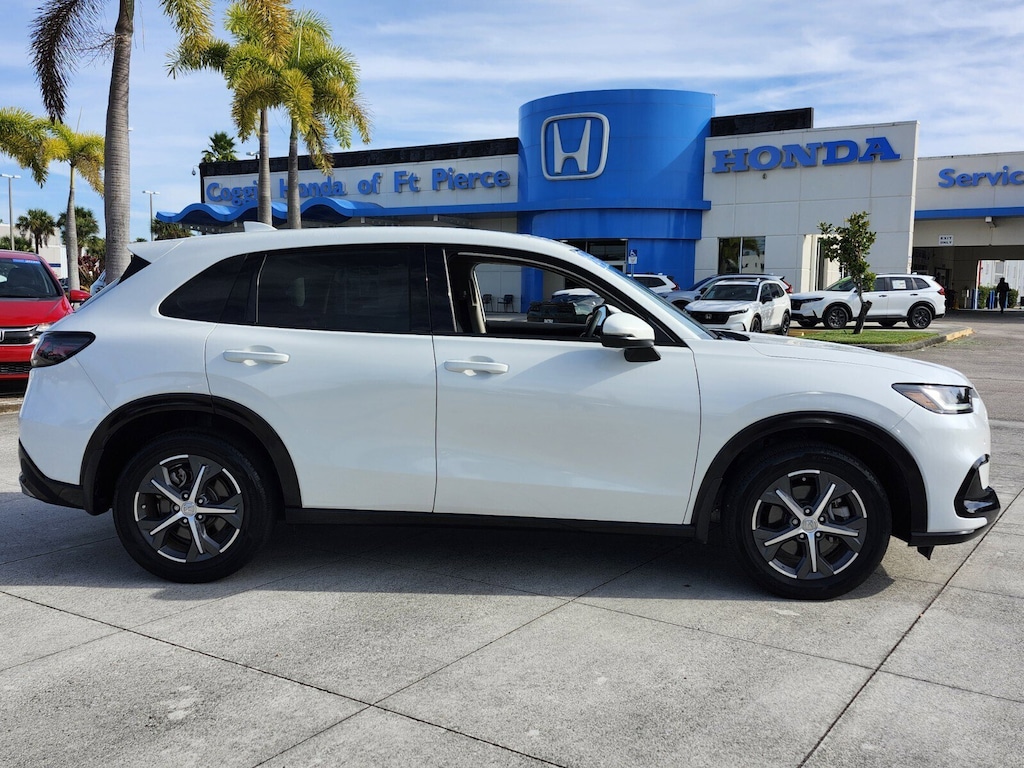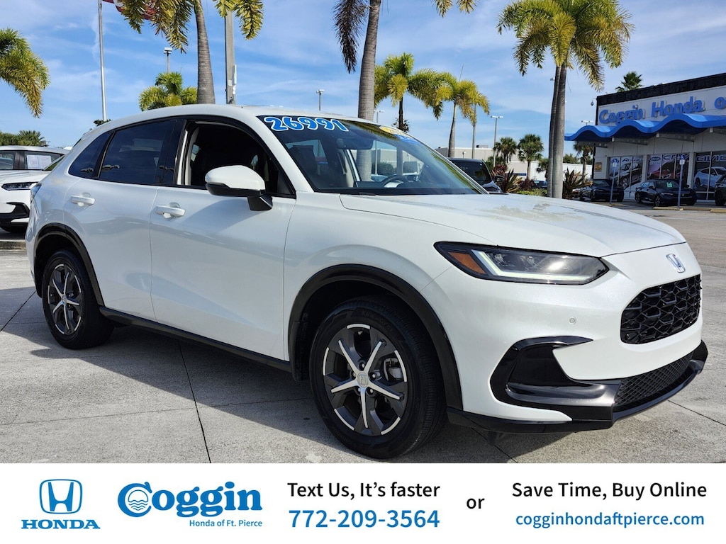 2024 Honda HR-V EX-L HondaTrue Certified Platinum White Pearl This gorgeous one-owner HondaTrue Certified 2024 Honda HR-V EX-L delivers the perfect blend of style comfort and efficiencywrapped in the always-popular Platinum White Pearl finish with a premium Black leather interior. With only 20424 miles this HR-V offers the smooth refined drive Honda is known for plus incredible long-term value thanks to its certified backing. Key Features & Highlights **HondaTrue Certified includes extended warranty thorough multi-point inspection and added buyer confidence** **Premium EX-L Trim with leather-appointed seating** **2.0L i-VTEC engine reliable efficient and built for everyday comfort** **Smooth CVT transmission** **7-inch touchscreen audio with Apple CarPlay & Android Auto** **Power Moonroof** **Honda Sensing Safety Suite** **Heated Front Seats** **Dual-Zone Climate Control** **Smart Entry with Walk-Away Auto Lock** **Remote Start** **Rearview Camera & Parking Sensors** **19-inch alloy wheels (EX-L exclusive appearance)** Why This HR-V EX-L Is a Smart Buy Youre getting the newest body style Hondas latest safety technology the most premium HR-V interior availableand because its HondaTrue Certified youll enjoy warranty protection and peace of mind no typical used car can match. Honda reliability plus real certification value makes this one stand out from anything else in the market. Come Experience It at Coggin Honda Ft. Pierce Clean certified HR-V EX-L modelsespecially in Platinum White Pearldont sit long. If you want comfort technology fuel efficiency and Honda dependability all in one package this is the one to come see.. CARFAX One-Owner. Certified. Recent Arrival! **HONDATRUE CERTIFIED** Odometer is 803 miles below market average!FWD CVT 2.0L I4 DOHC 16V i-VTEC 26/32 City/Highway MPGHondaTrue Certified Details: * Warranty Deductible: $0 * Limited Warranty: 24 Month/100000 Mile (whichever comes first) after new car warranty expires or from certified purchase date * Transferable Warranty * 182 Point Inspection * Vehicle History * Powertrain Limited Warranty: 84 Month/100000 Mile (whichever comes first) from original in-service date * Roadside Assistance * Vehicles purchased within New Vehicle Limited Warranty period: extends New Vehicle Limited Warranty to 5 years*/60000 miles*. Honda Care Roadside Assistance for 2 year/100000 miles (whichever occurs first). Up to two complimentary oil changes within the first year of ownership. SiriusXM 90-Day Trial.