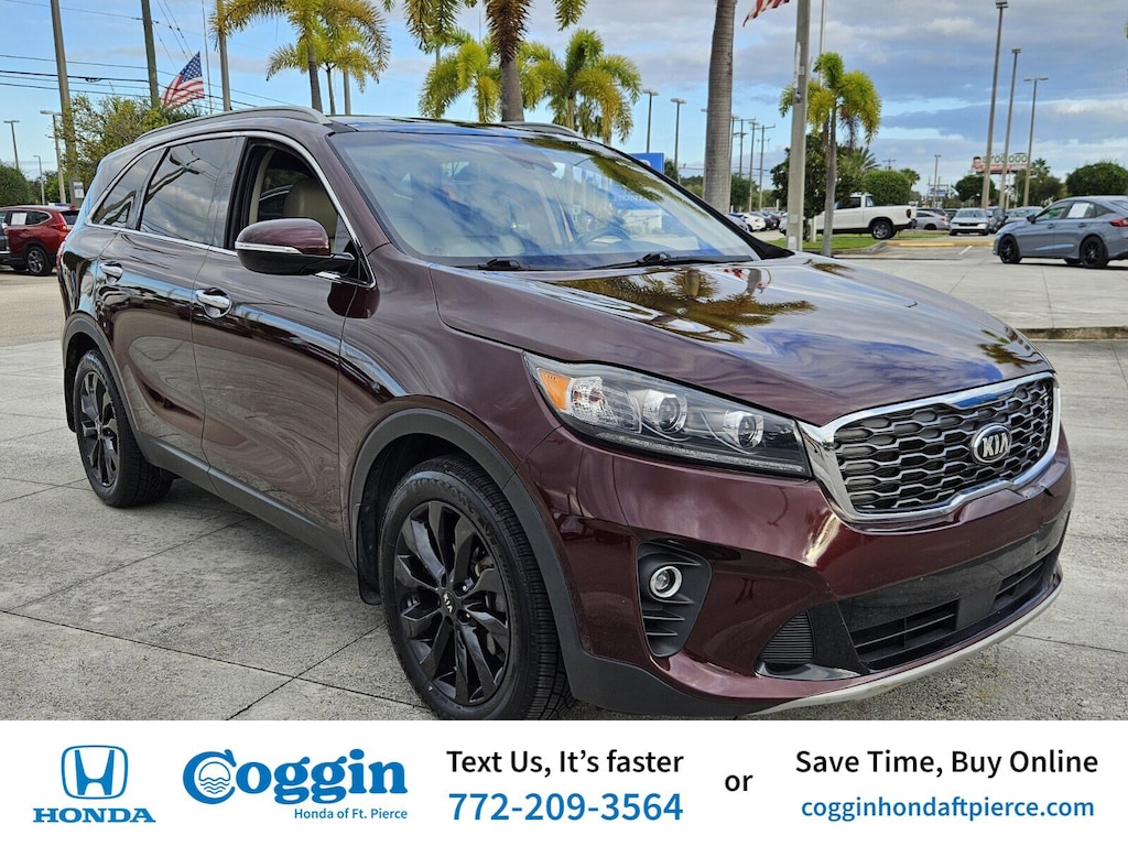 2020 Kia Sorento EX VIN: 5XYPH4A50LG709714|Stock #: CHFS241337A Odometer: 101162 miles|Drivetrain: FWD Drive in comfort and confidence with this One-Owner Clean Carfax 2020 Kia Sorento EX finished in stunning Sangria over a Stone Beige interior. Powered by a strong V6 engine paired with an 8-speed automatic transmission this Sorento delivers smooth performance and impressive versatilityperfect for family adventures or daily commuting. The EX trim offers a premium blend of technology safety and comfort features including: **Leather-appointed seating** **Heated front seats** **Advanced driver-assist safety systems** **Power front seats and keyless entry** **Touchscreen infotainment with Apple CarPlay & Android Auto integration** With seating for seven refined design and Kias reputation for reliability this Sorento EX is the ideal combination of value practicality and comfort. Schedule your test drive today at Coggin Honda of Fort Pierce!. CARFAX One-Owner. Clean CARFAX. Priced below KBB Fair Purchase Price!FWD 8-Speed Automatic V6 19/26 City/Highway MPGAwards: * JD Power Initial Quality Study (IQS)